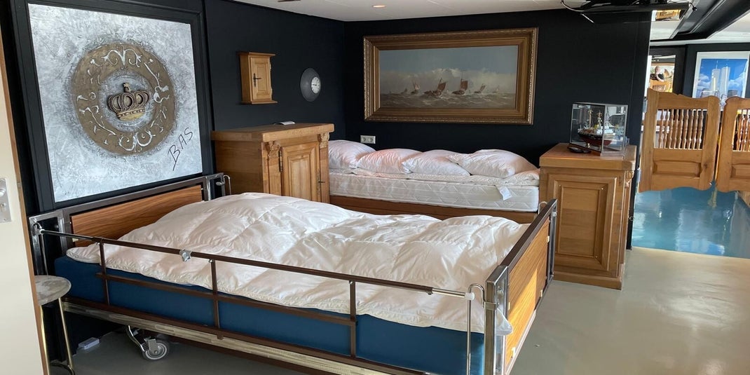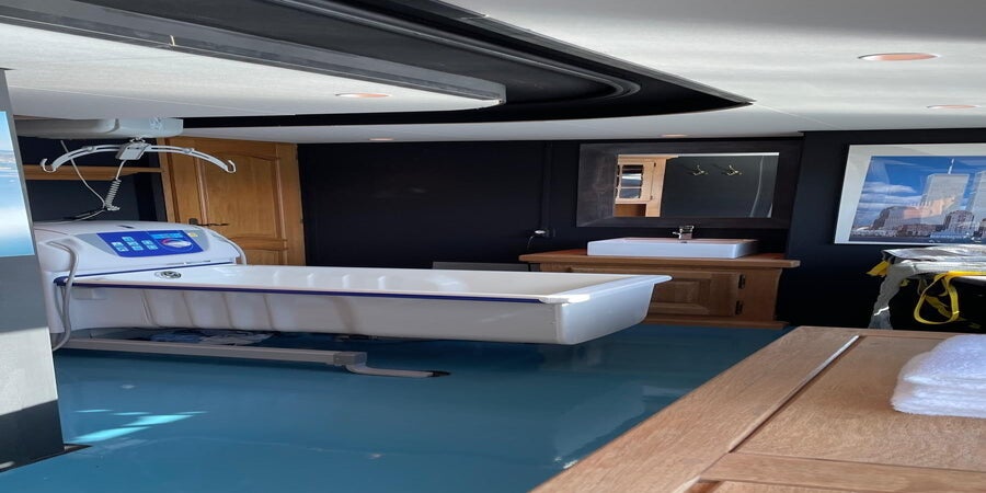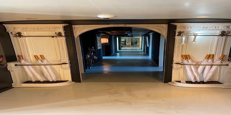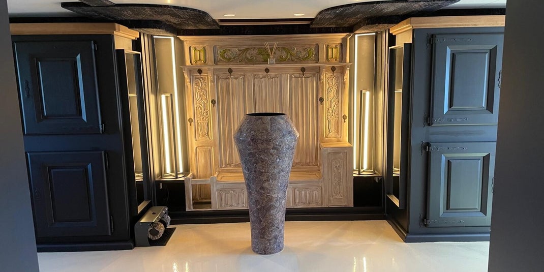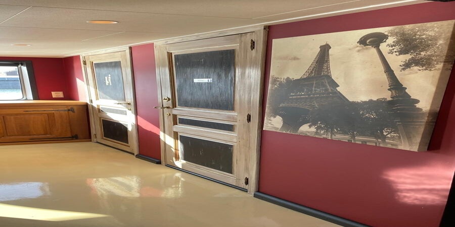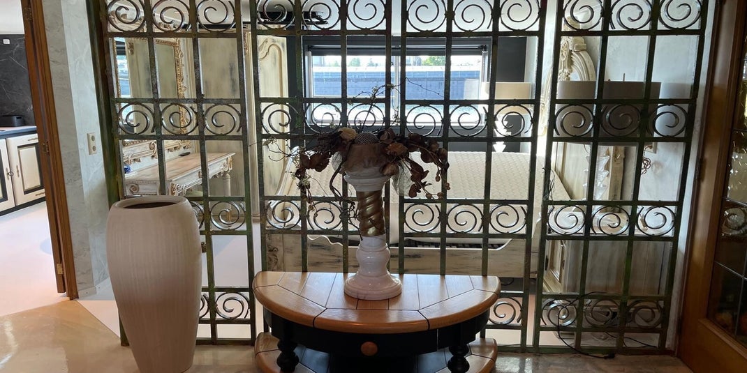 - Additional room with fixed seating and mirrored walls, adding to the ambiance.