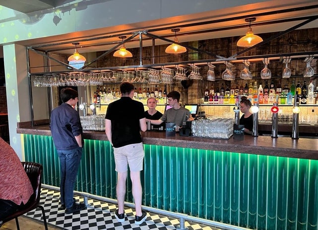 The bar servery immediately draws attention with its impressive design and practical features. It's equipped with back-bar bottle and wine refrigerated cabinets and EPOS tills, making it well-prepared for seamless bar service.
