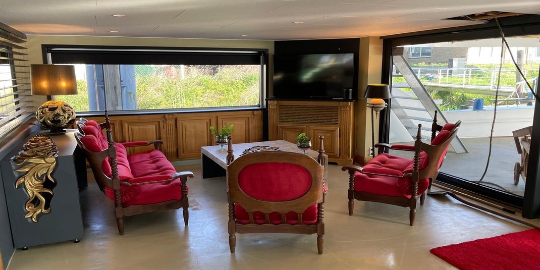 - A spacious, open-plan seating area with a central bar, perfect for social gatherings.